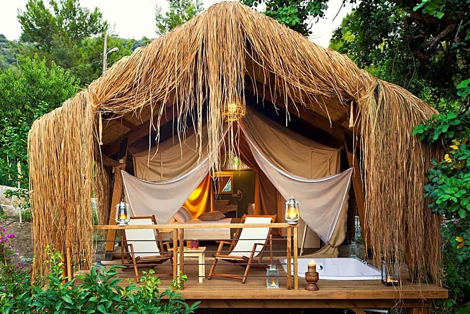 This suite is located in a bamboo house with wooden and fabric interiors, and straw roof. It offers stunning views of the sea. It also has a private balcony with a hot tub, a vegetable garden and direct access to the sea.